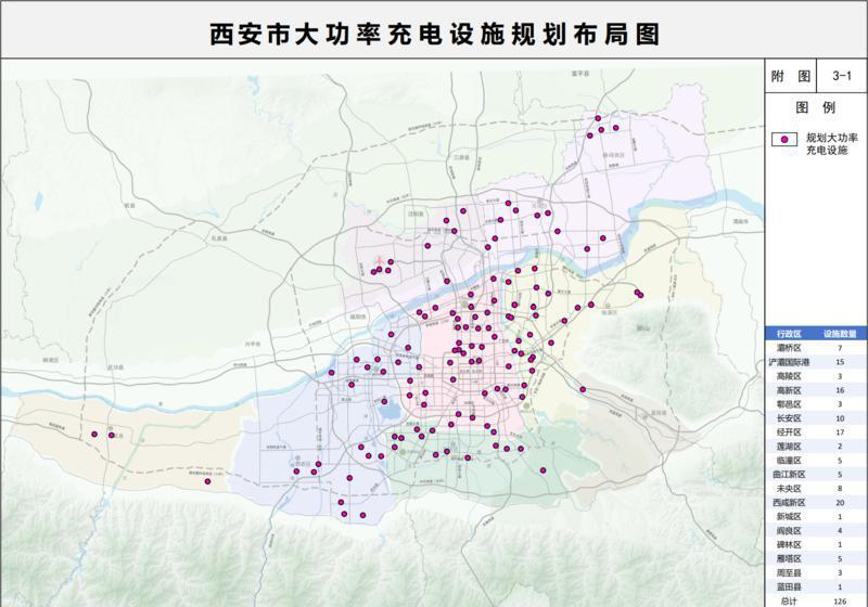 西安市大功率充电设施规划布局图。